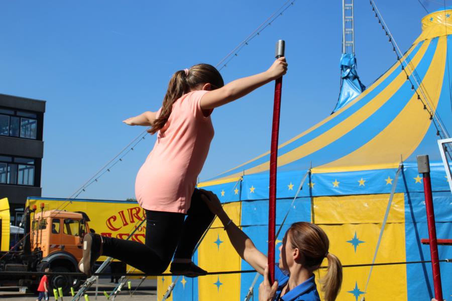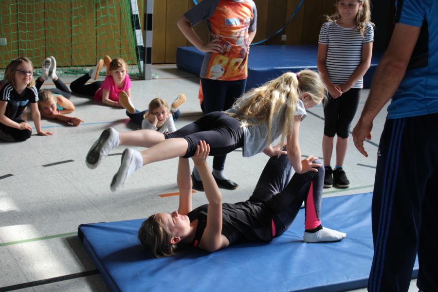 haben, entsteht aus vielen einzelnen Szenen heute eine komplette Zirkusnummer. Wir werden immer sicherer und staunen, was wir alles können! In unseren Gruppen sind wir zusammengewachsen zu einer Einheit. Wir freuen uns füreinander und fiebern gegenseitig mit. Wir muntern uns auf und trösten uns, wenn etwas nicht klappt. Unserer Lehrerinnen kriegen ihre Münder vor Staunen gar nicht mehr zu. |