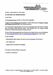 Weiterführung Wechselunterricht und Notbetreuung 5. März 2021 asmusu Mitteilungen Kommentare deaktiviert für Weiterführung Wechselunterricht und Notbetreuung